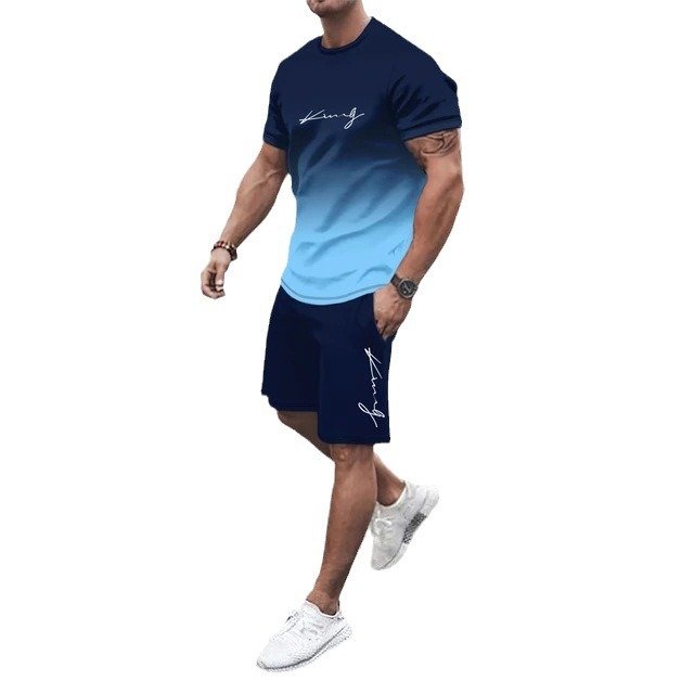 3D Digital Printing Simple Letter Gradient T-shirt Two-piece Suit Men | 1121