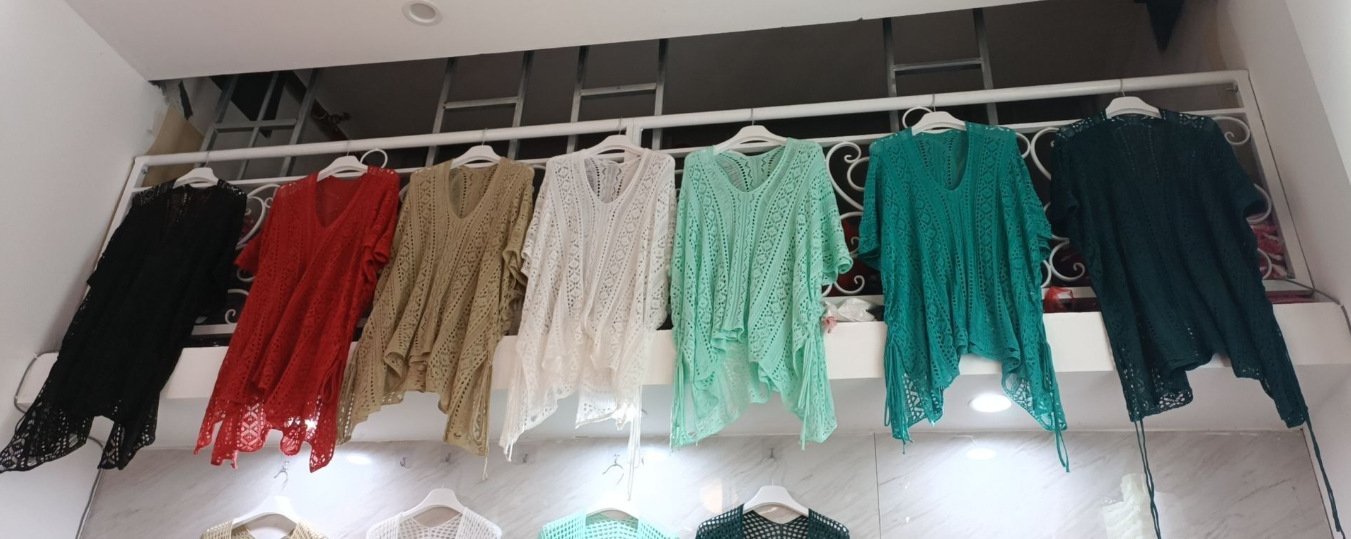 hollow lace V-neck knitted top lazy foreign style medium-length bat sleeve blouse | 1029