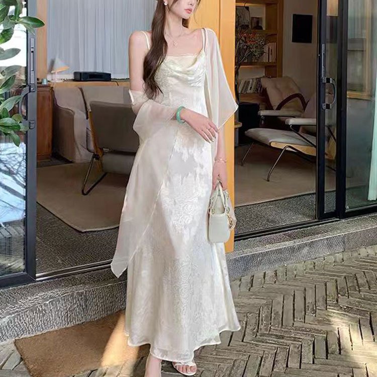 jacquard suspender dress women’s early spring + cardigan | 8014