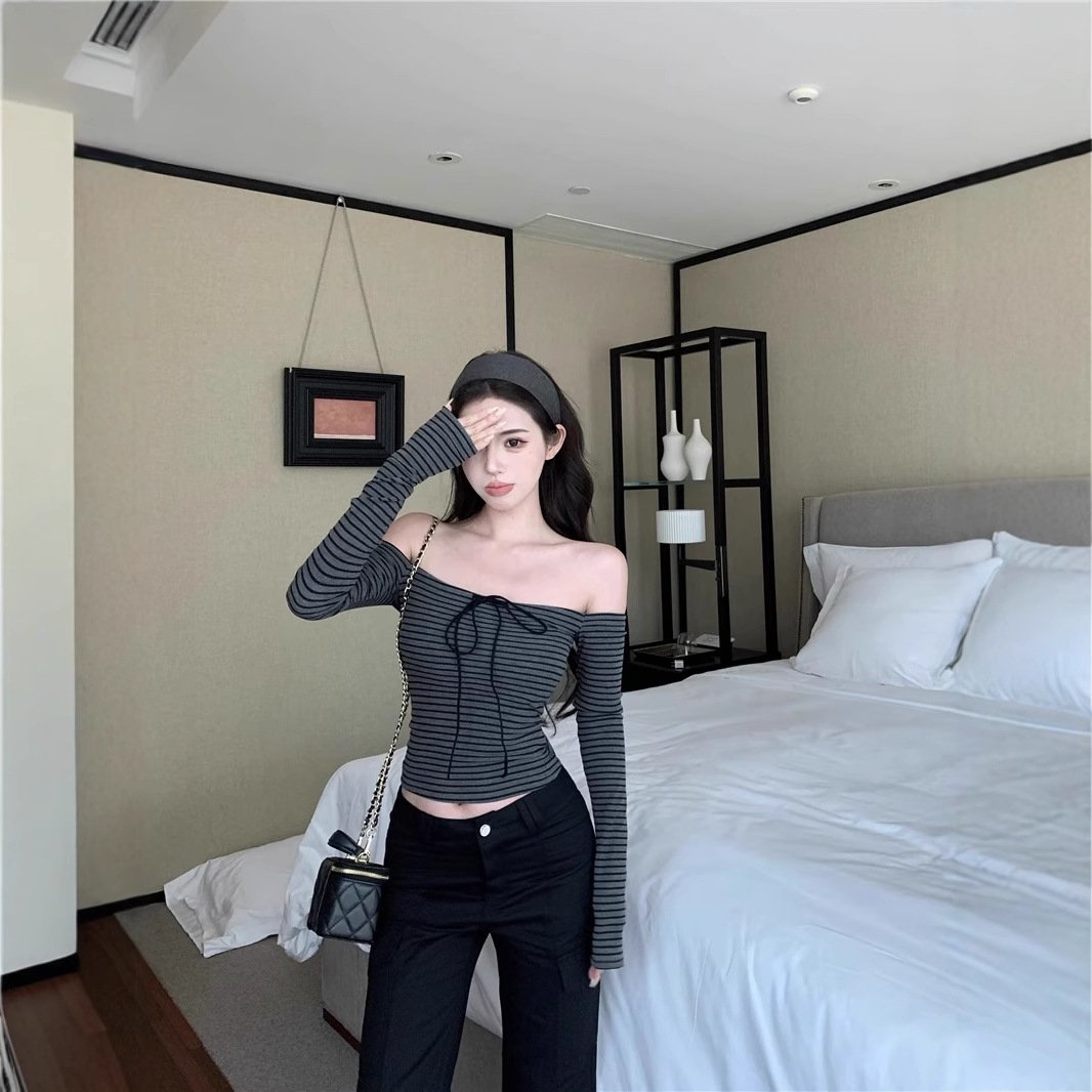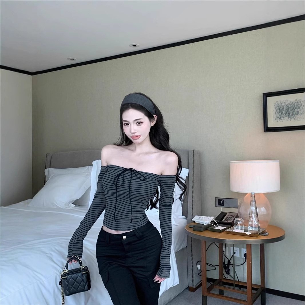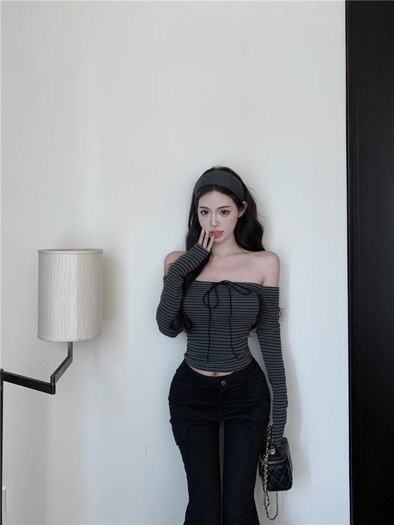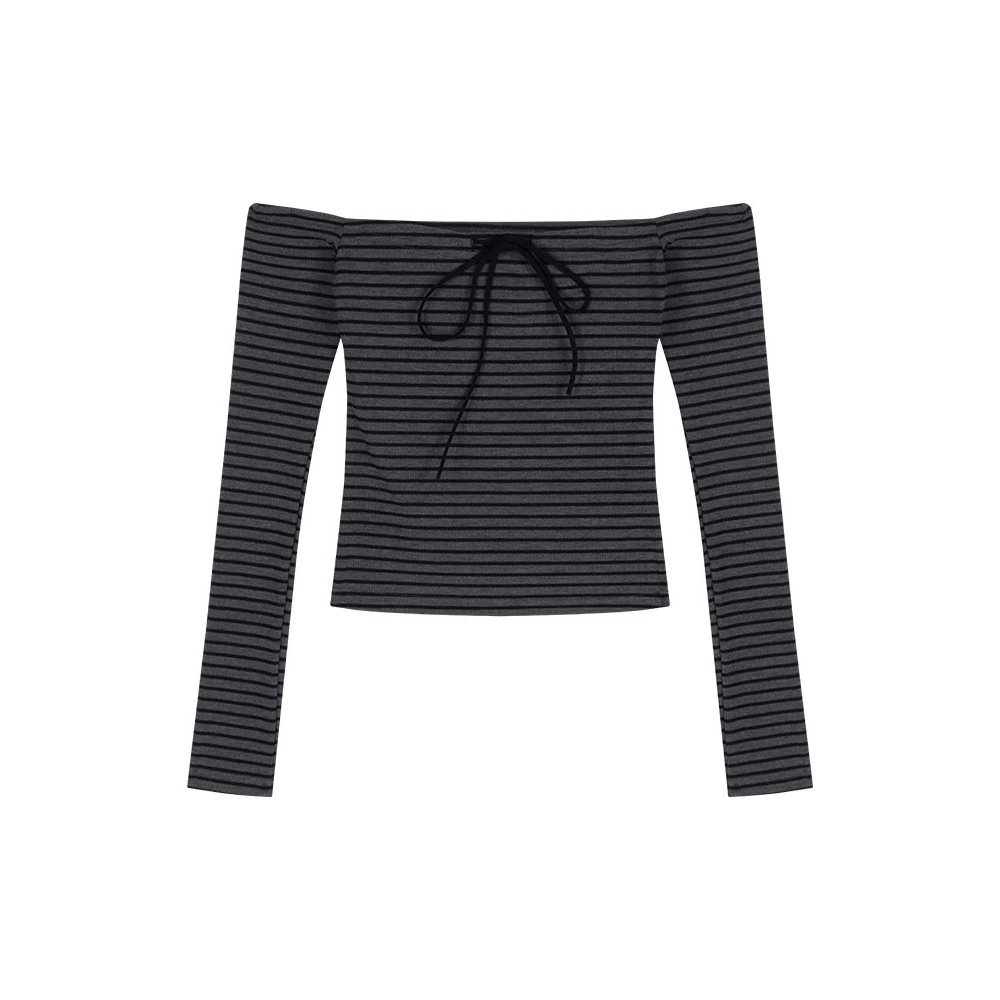 Straight neck vintage striped long sleeve t-shirt | 9003