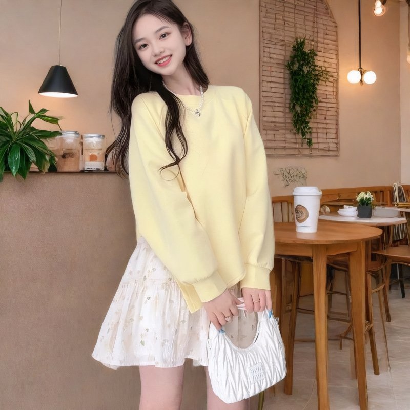 Sweatshirt Fake Two Pieces Casual Loose Sweatshirt Dress Women | 8013