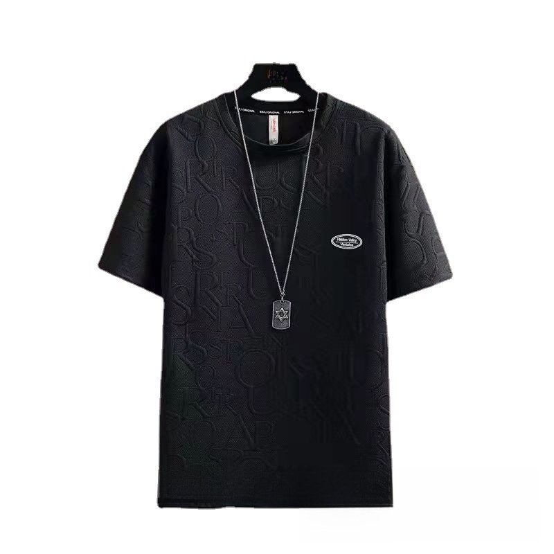 trendy all-match solid color casual short-sleeved T-shirt waffle top Korean style | 1054